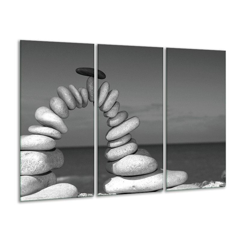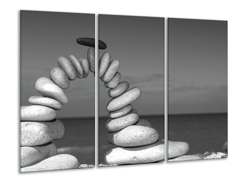 Glasschilderij Stenen | Zwart, Grijs | 120x80cm 3Luik