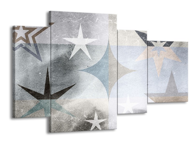 Glasschilderij Sterren | Grijs, Crème | 120x75cm 4Luik