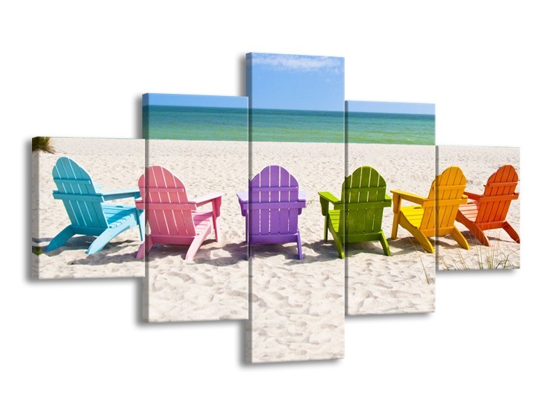 Glasschilderij Strand, Zee | Blauw, Crème , Groen | 125x70cm 5Luik