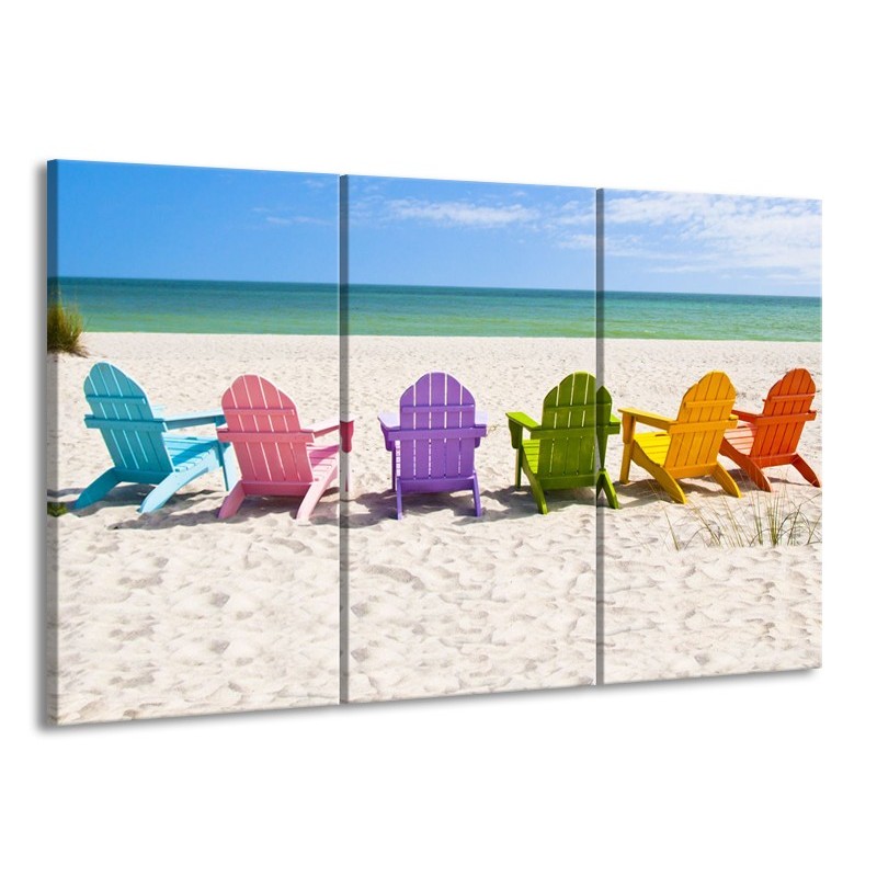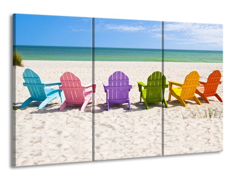 Glasschilderij Strand, Zee | Blauw, Crème , Groen | 165x100cm 3Luik