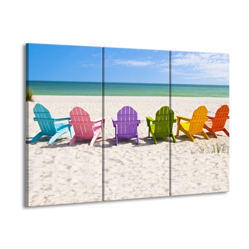Glasschilderij Strand, Zee | Blauw, Crème , Groen | 60x90cm 3Luik