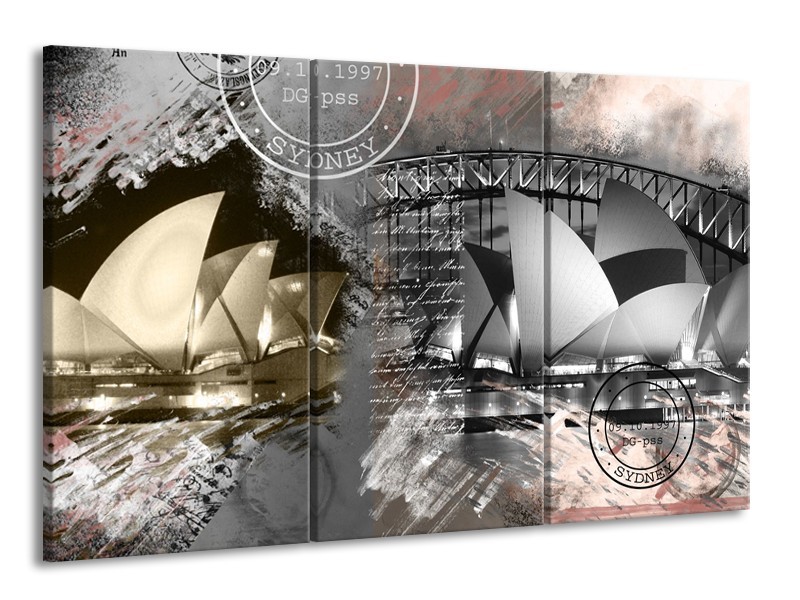 Glasschilderij Sydney, Modern | Grijs, Crème , Rood | 165x100cm 3Luik
