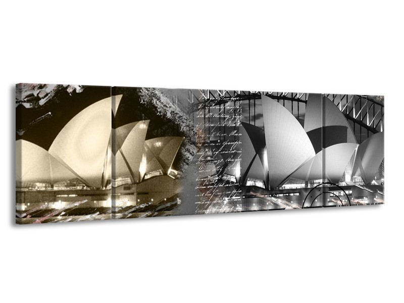 Glasschilderij Sydney, Modern | Grijs, Crème , Rood | 170x50cm 3Luik