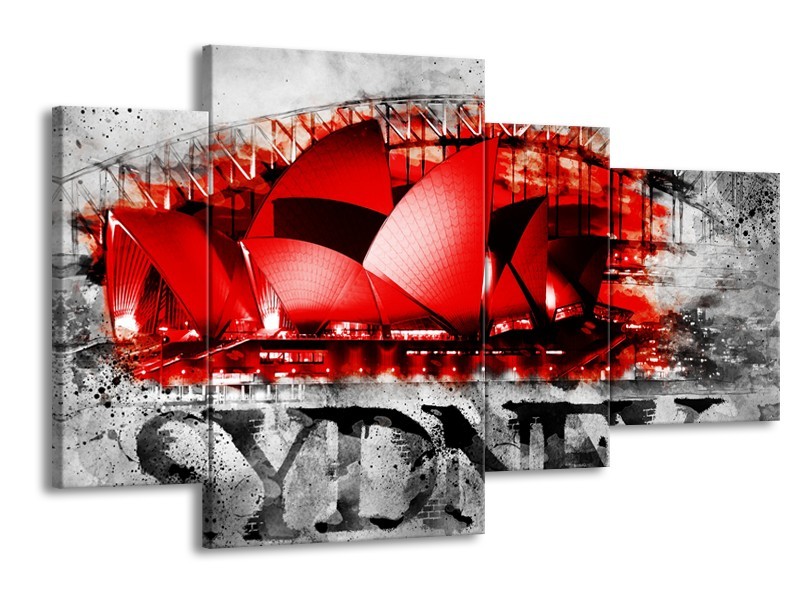 Glasschilderij Sydney, Steden | Rood, Zwart, Grijs | 120x75cm 4Luik