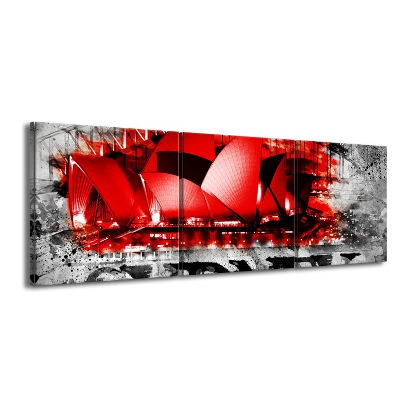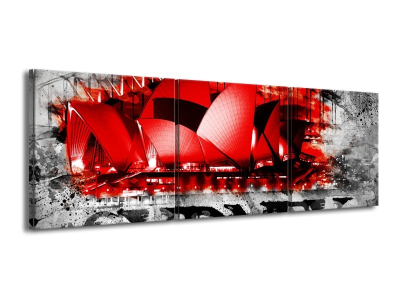 Glasschilderij Sydney, Steden | Rood, Zwart, Grijs | 150x50cm 3Luik