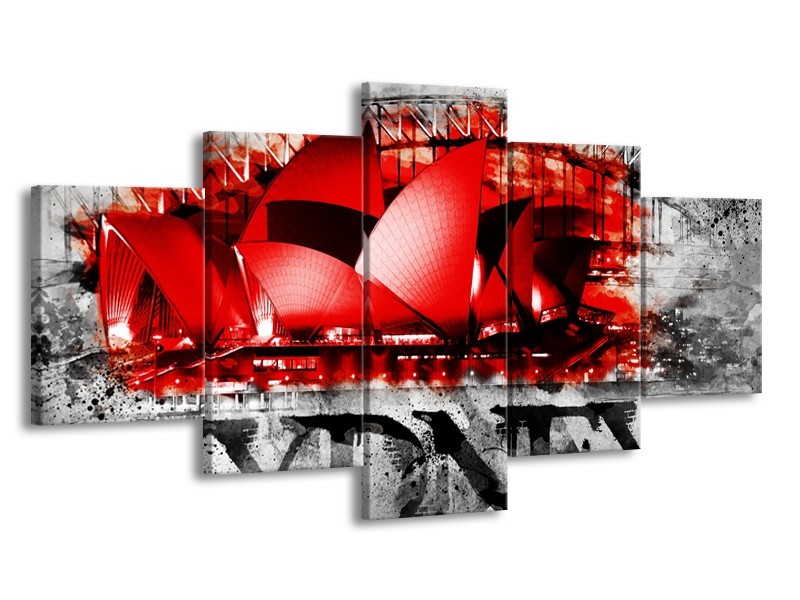 Glasschilderij Sydney, Steden | Rood, Zwart, Grijs | 150x80cm 5Luik