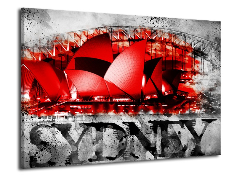 Glasschilderij Sydney, Steden | Rood, Zwart, Grijs | 70x50cm 1Luik