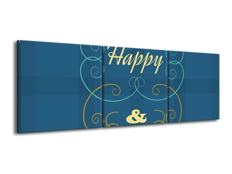 Glasschilderij Tekst | Blauw, Geel | 150x50cm 3Luik