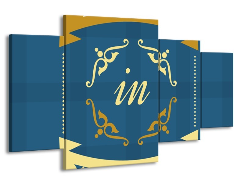 Glasschilderij Tekst | Blauw, Geel | 160x90cm 4Luik
