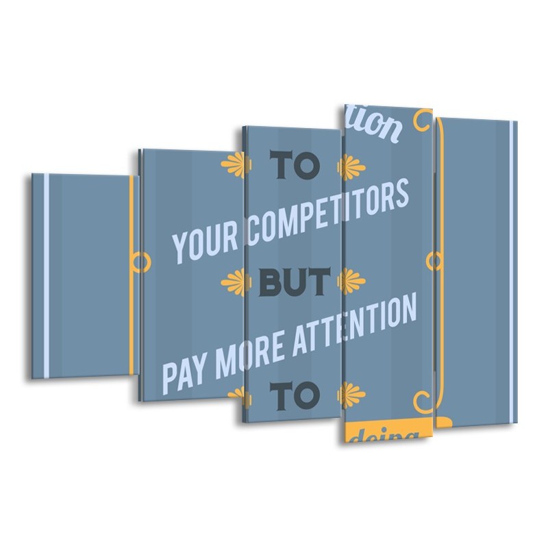 Glasschilderij Tekst | Blauw, Grijs, Geel | 150x100cm 5Luik