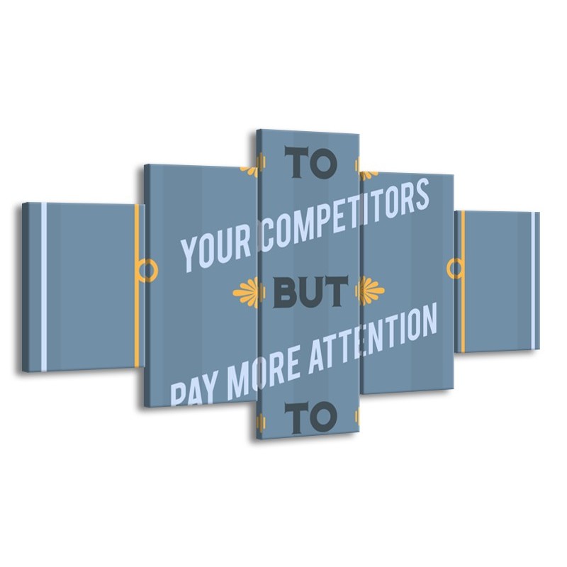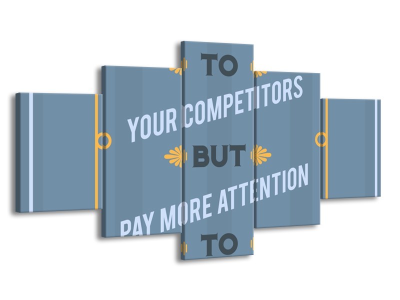Glasschilderij Tekst | Blauw, Grijs, Geel | 150x80cm 5Luik