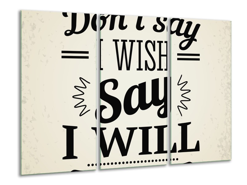 Glasschilderij Tekst | Crème , Zwart | 120x80cm 3Luik