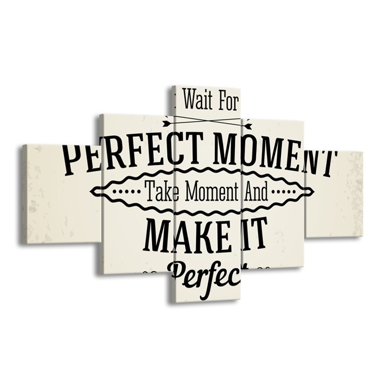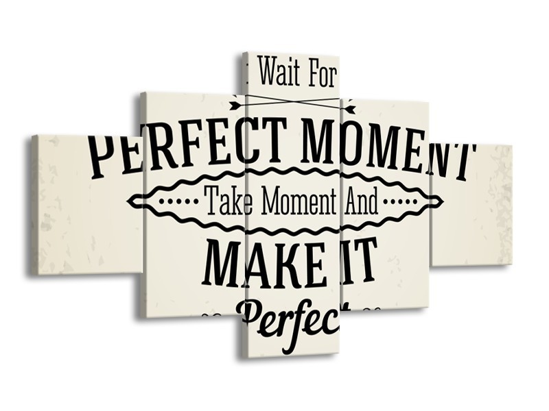 Glasschilderij Tekst | Crème , Zwart | 125x70cm 5Luik