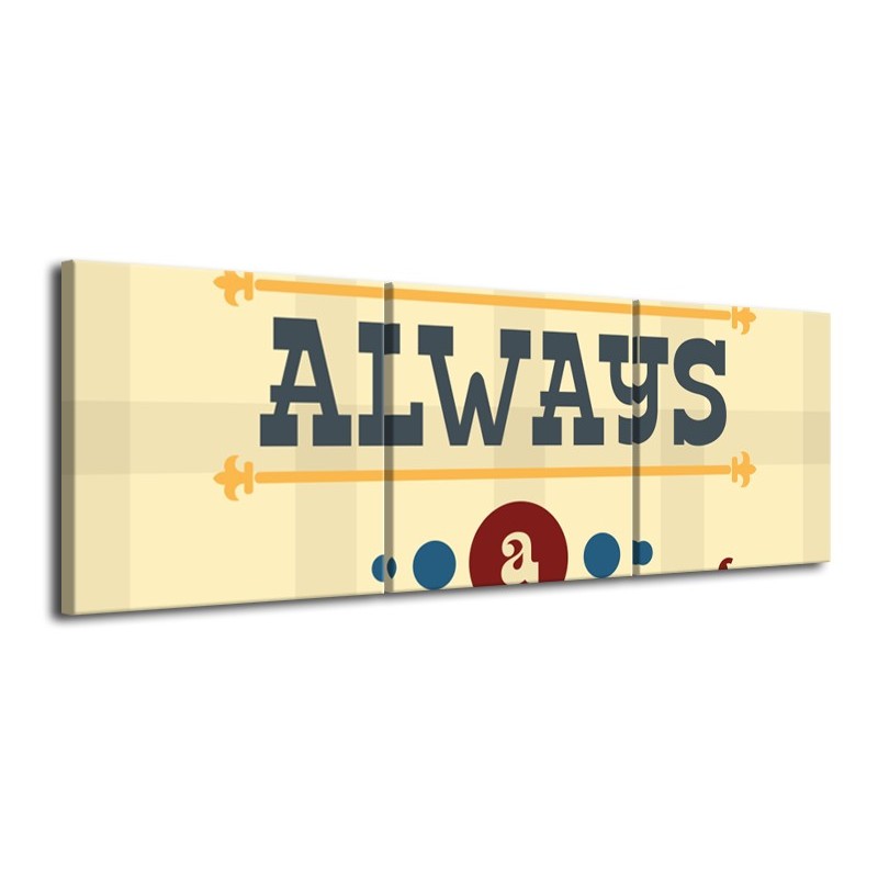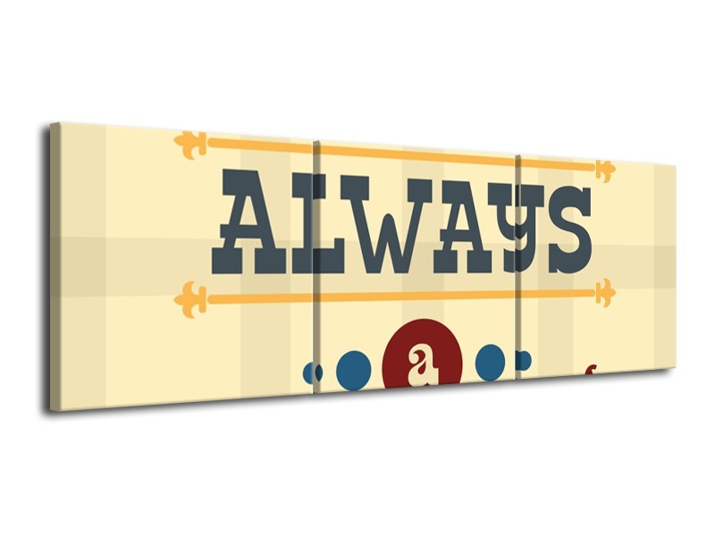 Glasschilderij Tekst | Geel, Bruin, Grijs | 120x40cm 3Luik