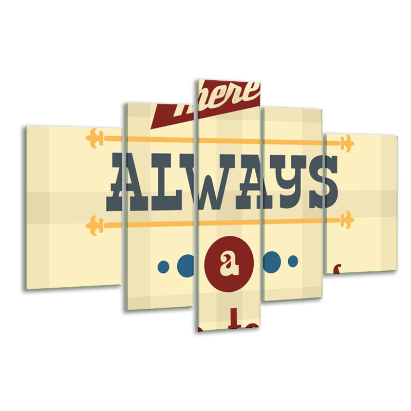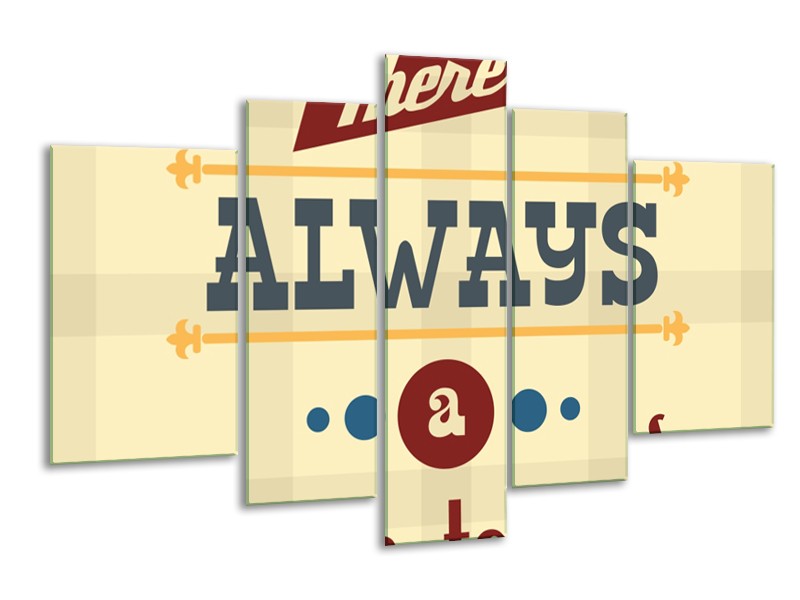 Glasschilderij Tekst | Geel, Bruin, Grijs | 170x100cm 5Luik