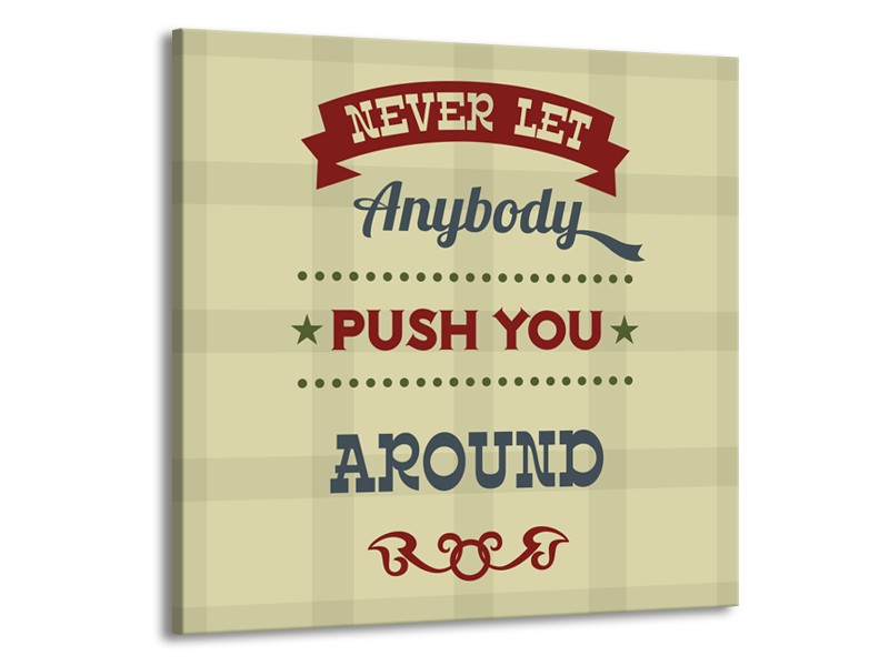 Glasschilderij Tekst | Geel, Bruin, Grijs | 70x70cm 1Luik