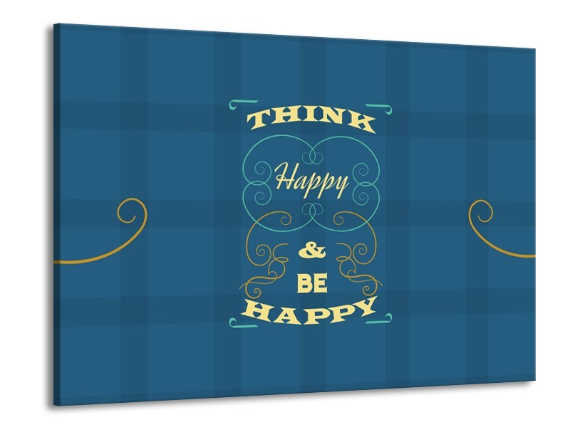 Glasschilderij Tekst, Modern | Blauw, Geel | 100x70cm 1Luik