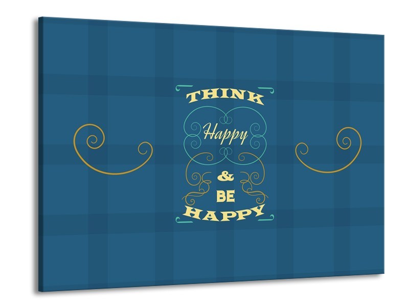 Glasschilderij Tekst, Modern | Blauw, Geel | 100x70cm 1Luik