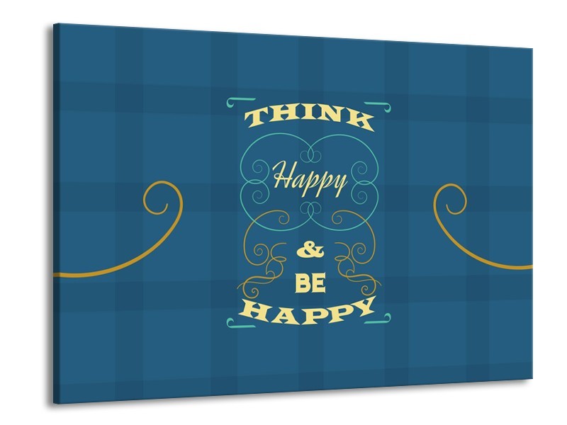 Glasschilderij Tekst, Modern | Blauw, Geel | 100x70cm 1Luik