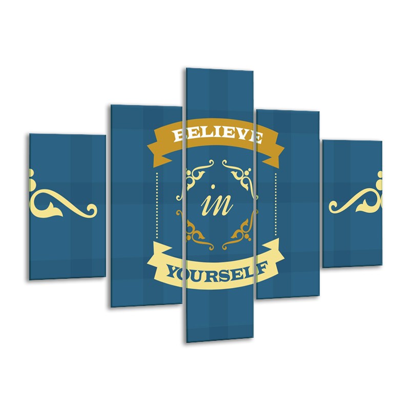 Glasschilderij Tekst, Modern | Blauw, Geel | 100x70cm 5Luik