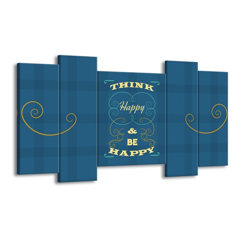 Glasschilderij Tekst, Modern | Blauw, Geel | 120x65cm 5Luik