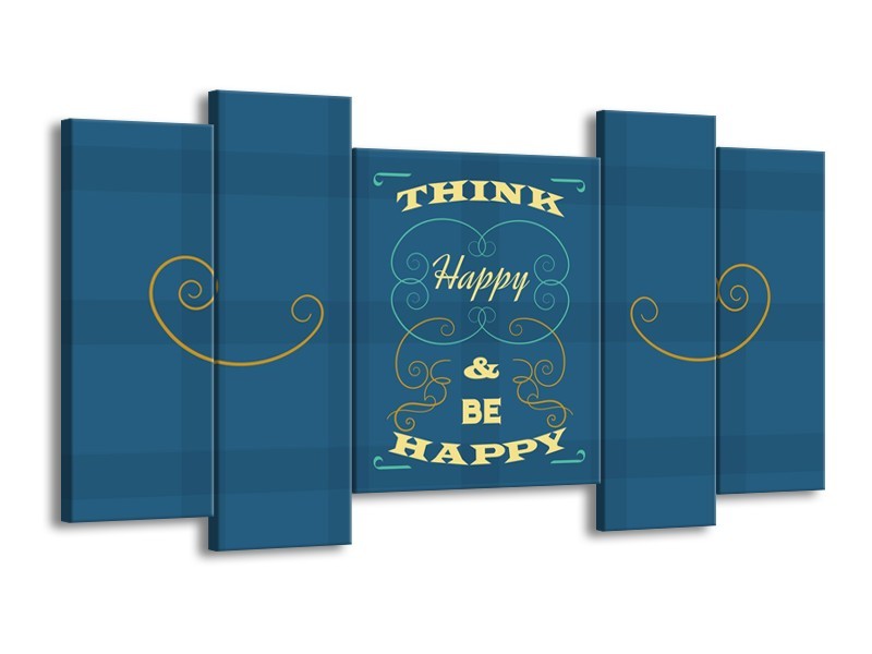Glasschilderij Tekst, Modern | Blauw, Geel | 120x65cm 5Luik