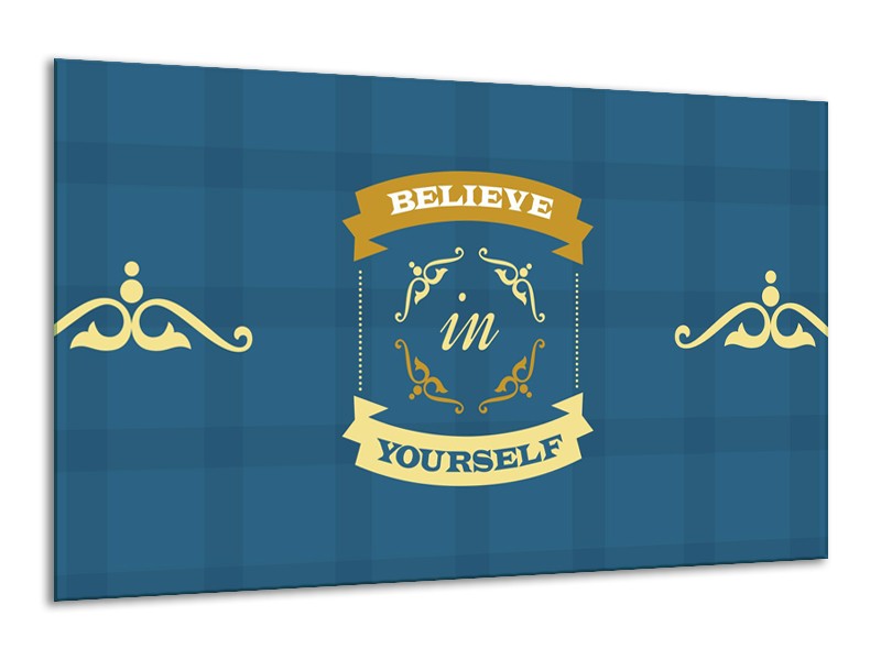 Glasschilderij Tekst, Modern | Blauw, Geel | 120x70cm 1Luik
