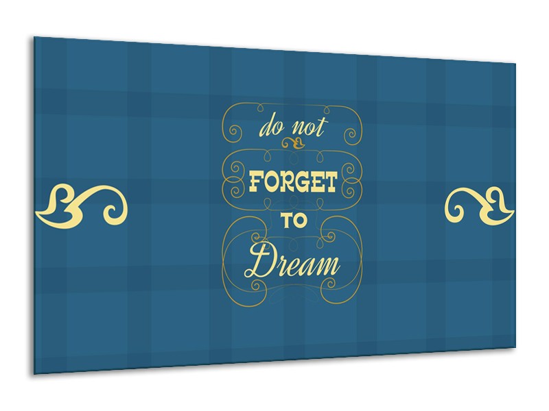 Glasschilderij Tekst, Modern | Blauw, Geel | 120x70cm 1Luik