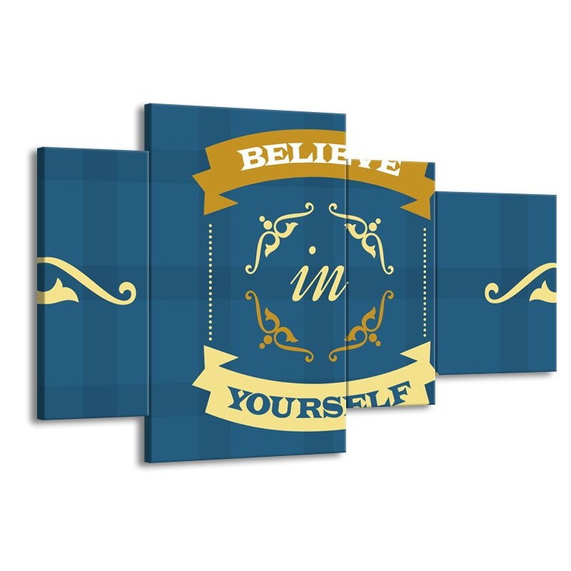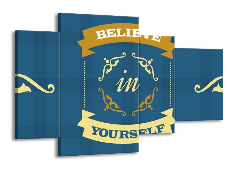 Glasschilderij Tekst, Modern | Blauw, Geel | 120x75cm 4Luik