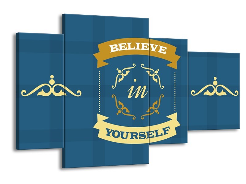 Glasschilderij Tekst, Modern | Blauw, Geel | 120x75cm 4Luik