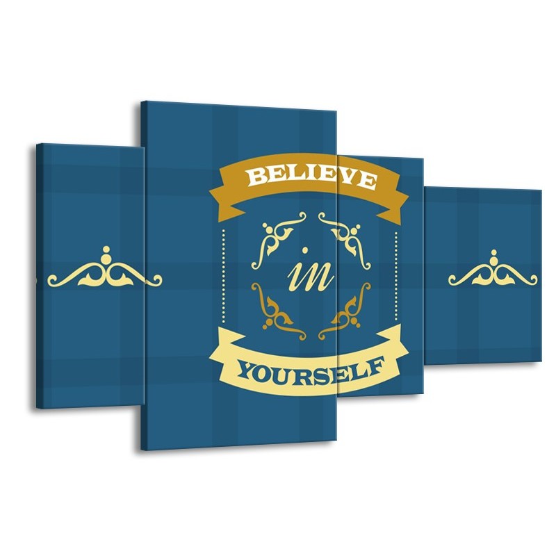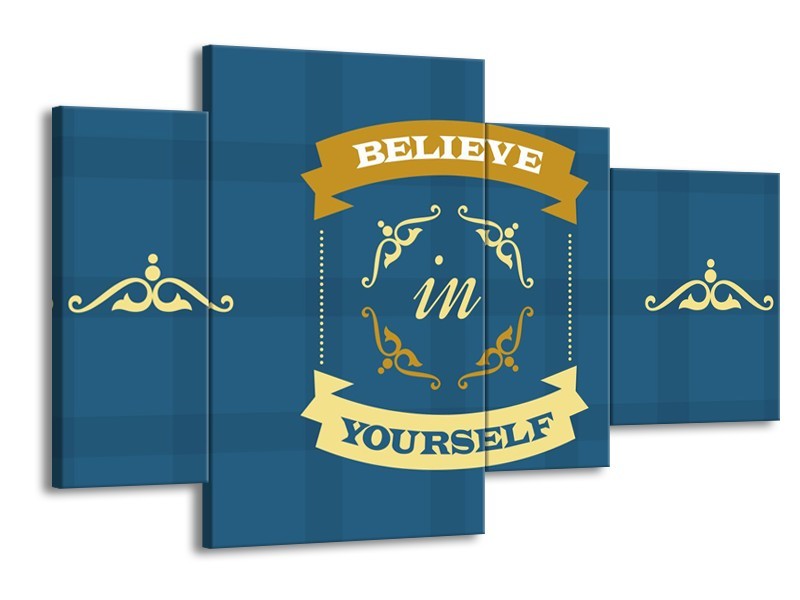 Glasschilderij Tekst, Modern | Blauw, Geel | 120x75cm 4Luik