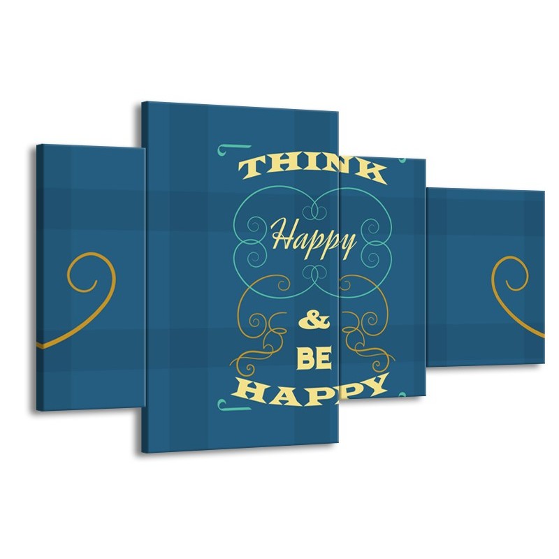 Glasschilderij Tekst, Modern | Blauw, Geel | 120x75cm 4Luik
