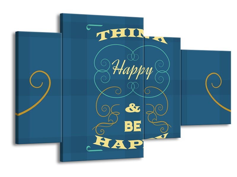 Glasschilderij Tekst, Modern | Blauw, Geel | 120x75cm 4Luik