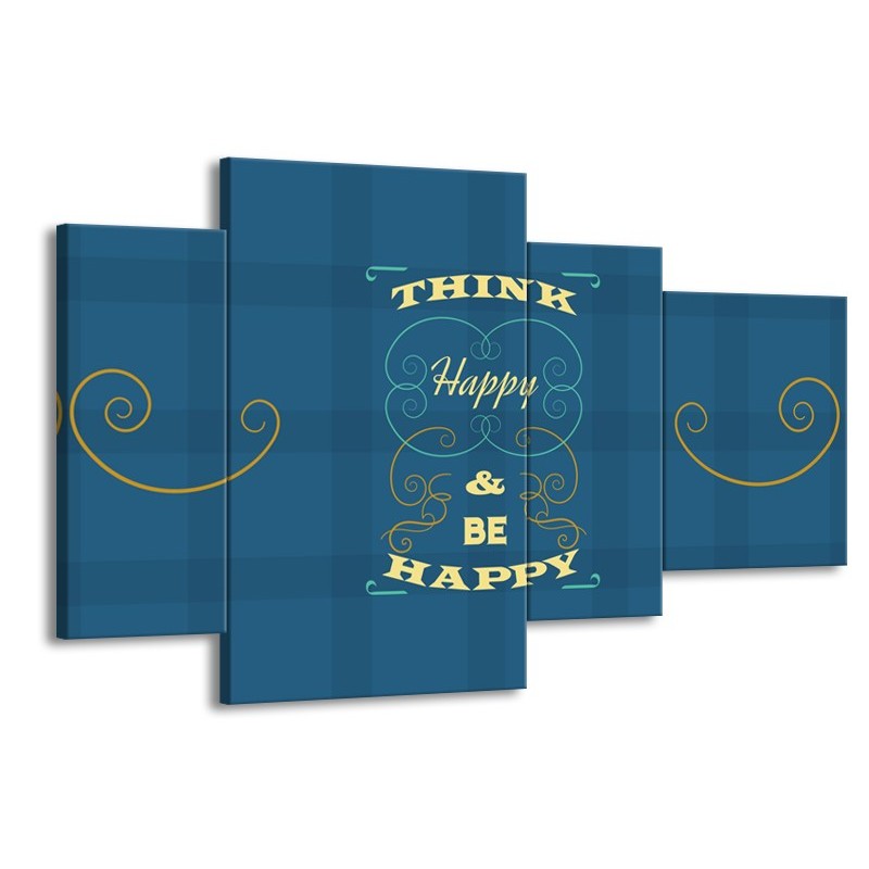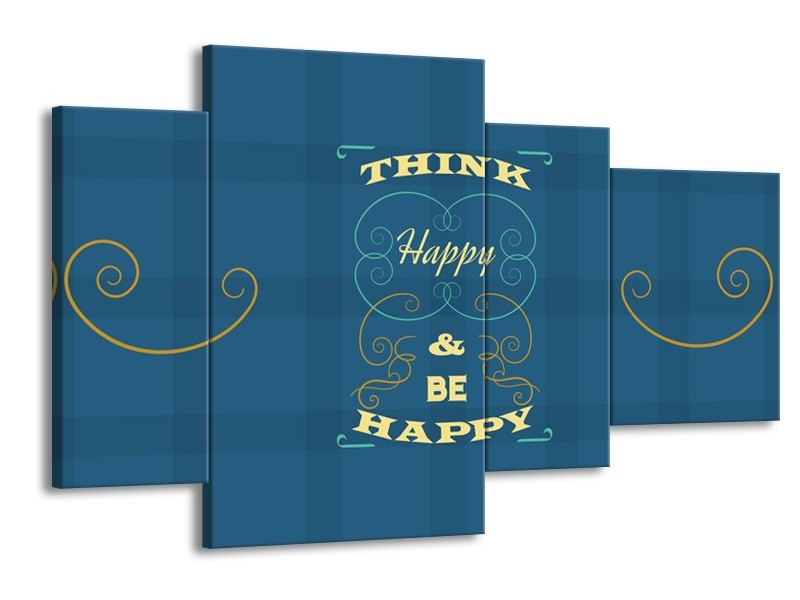Glasschilderij Tekst, Modern | Blauw, Geel | 120x75cm 4Luik