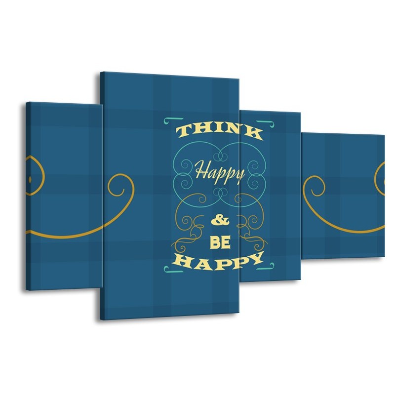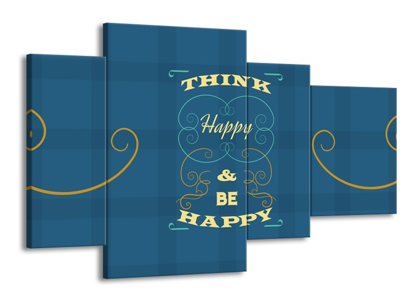 Glasschilderij Tekst, Modern | Blauw, Geel | 120x75cm 4Luik