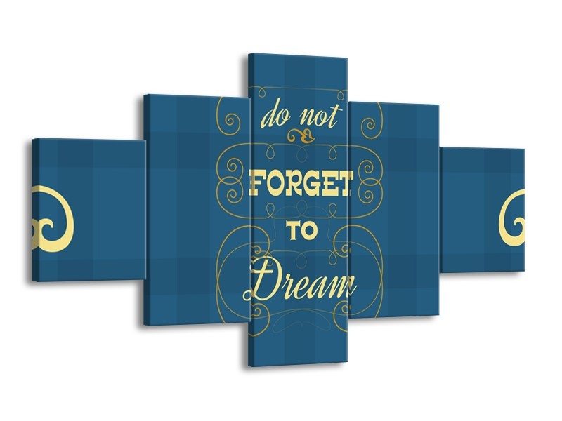 Glasschilderij Tekst, Modern | Blauw, Geel | 125x70cm 5Luik