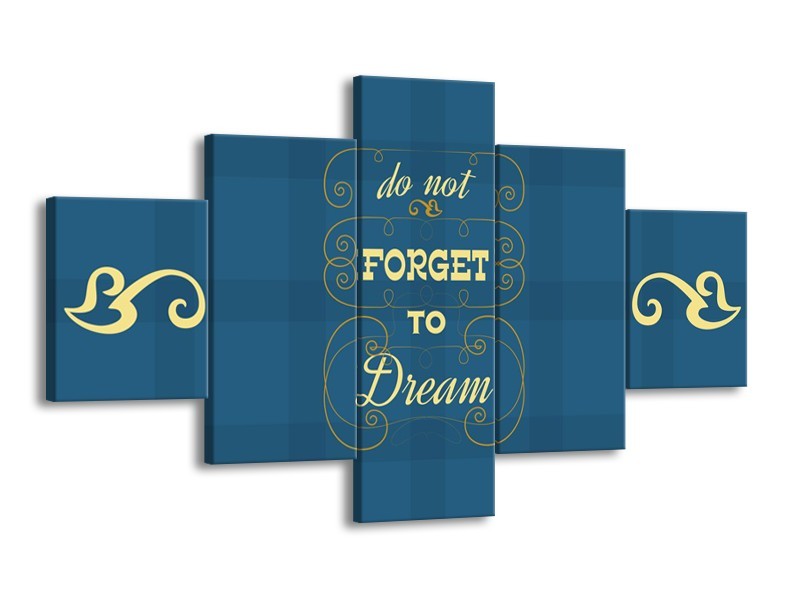 Glasschilderij Tekst, Modern | Blauw, Geel | 125x70cm 5Luik