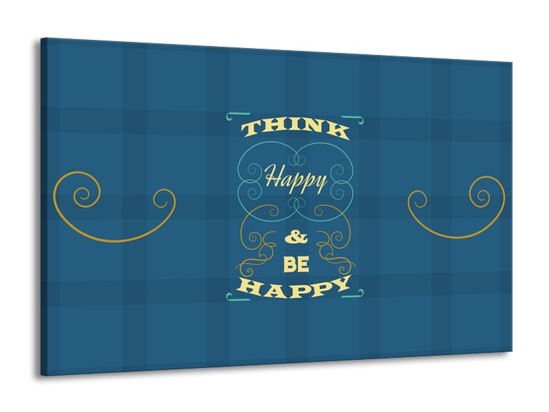 Glasschilderij Tekst, Modern | Blauw, Geel | 140x90cm 1Luik