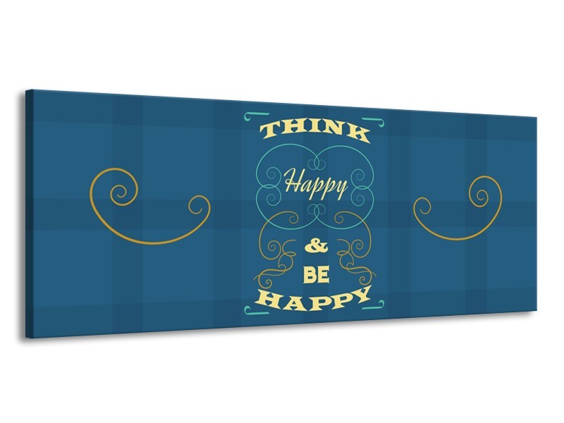 Glasschilderij Tekst, Modern | Blauw, Geel | 145x58cm 1Luik