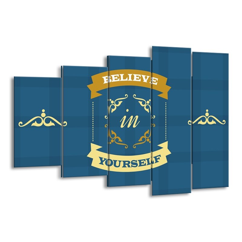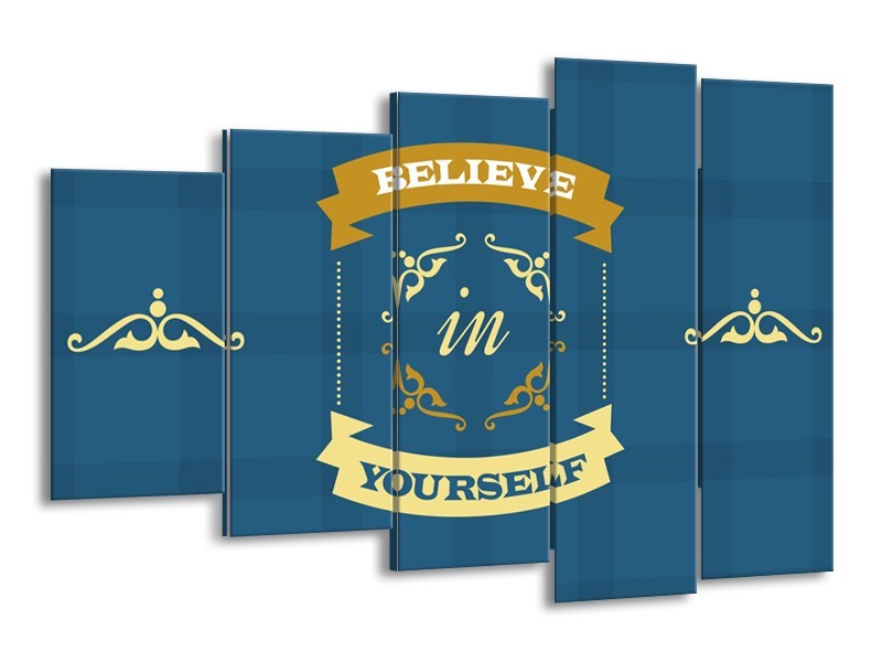 Glasschilderij Tekst, Modern | Blauw, Geel | 150x100cm 5Luik