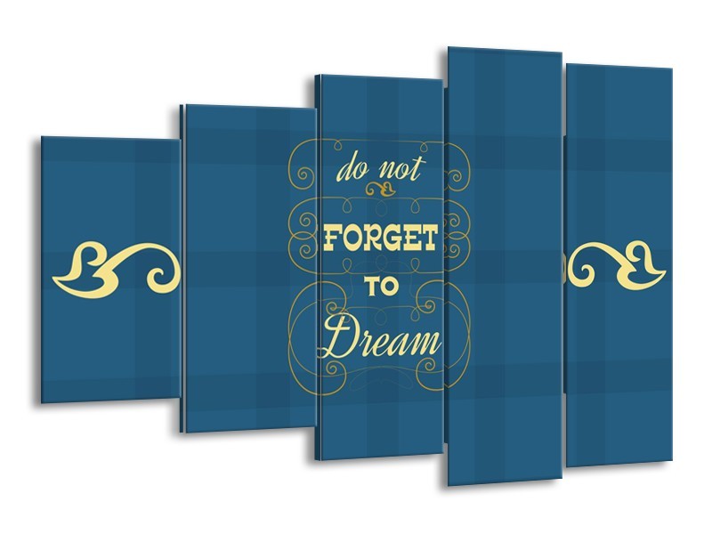 Glasschilderij Tekst, Modern | Blauw, Geel | 150x100cm 5Luik