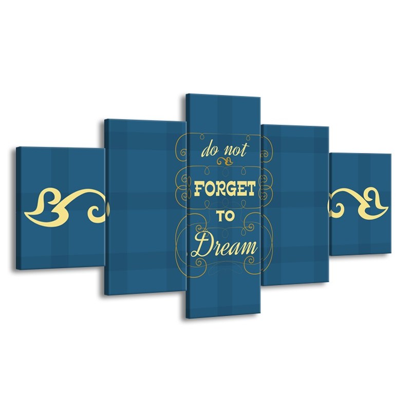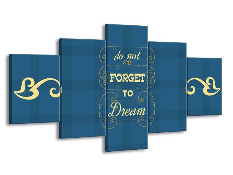 Glasschilderij Tekst, Modern | Blauw, Geel | 150x80cm 5Luik