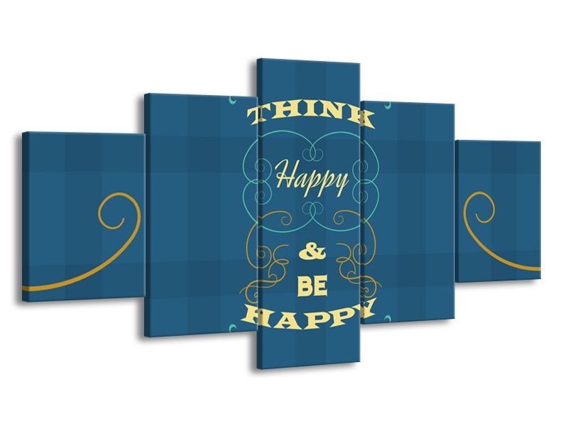 Glasschilderij Tekst, Modern | Blauw, Geel | 150x80cm 5Luik