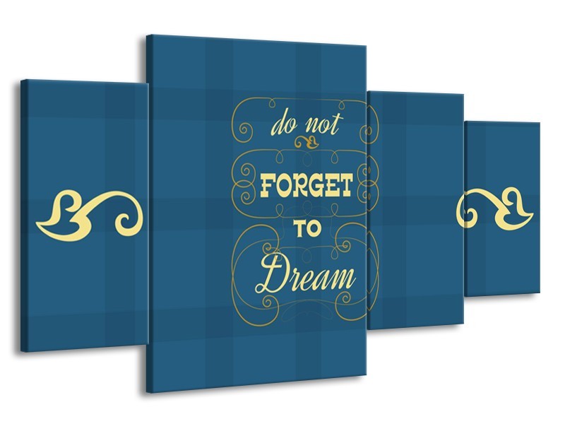 Glasschilderij Tekst, Modern | Blauw, Geel | 160x90cm 4Luik