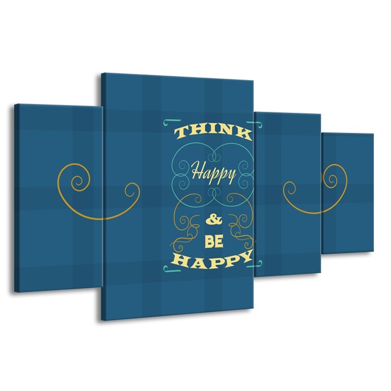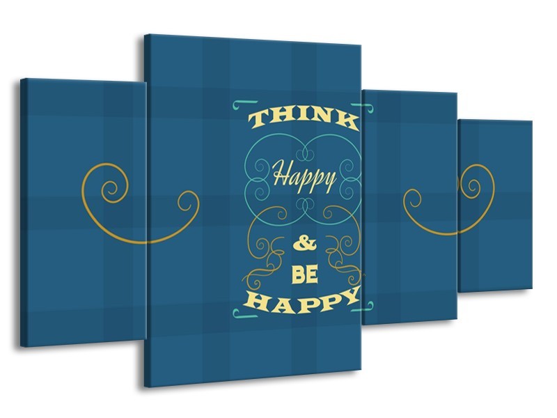 Glasschilderij Tekst, Modern | Blauw, Geel | 160x90cm 4Luik