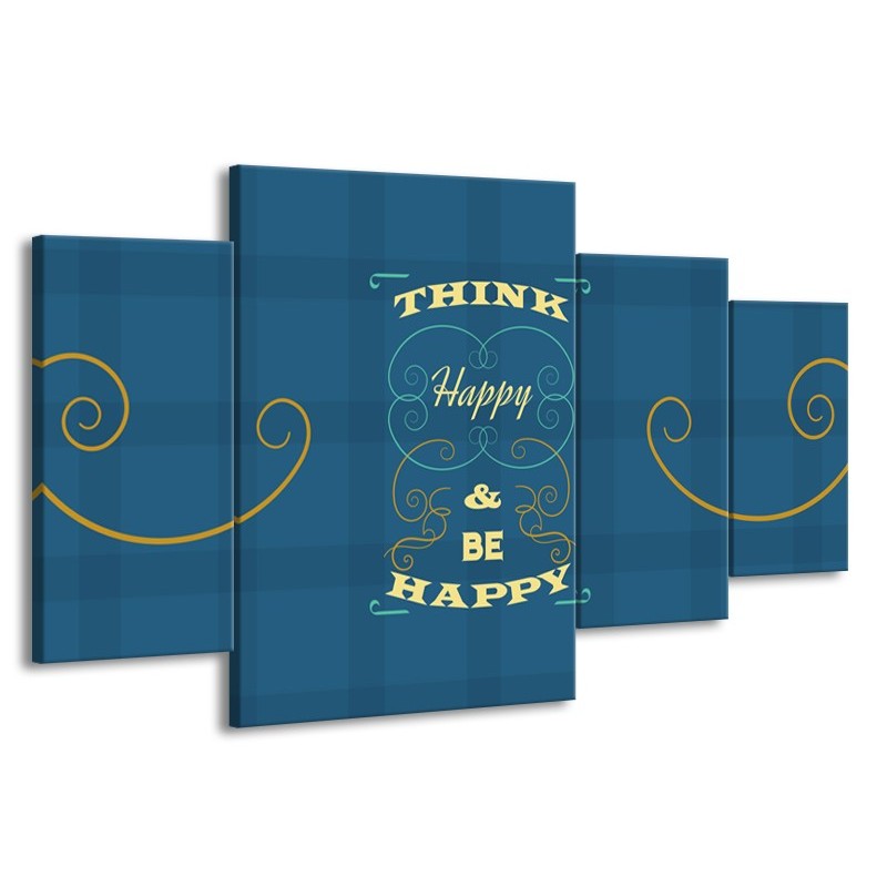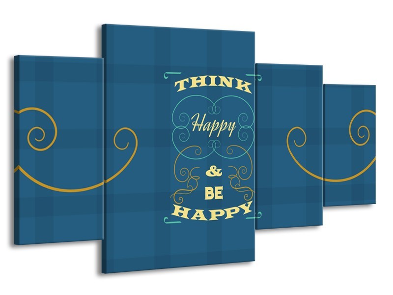 Glasschilderij Tekst, Modern | Blauw, Geel | 160x90cm 4Luik