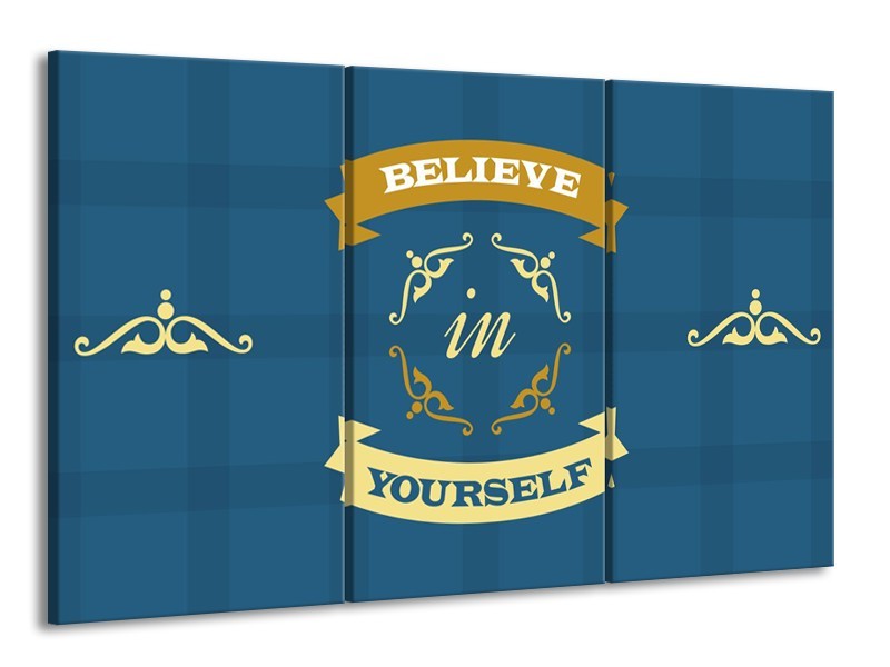 Glasschilderij Tekst, Modern | Blauw, Geel | 165x100cm 3Luik