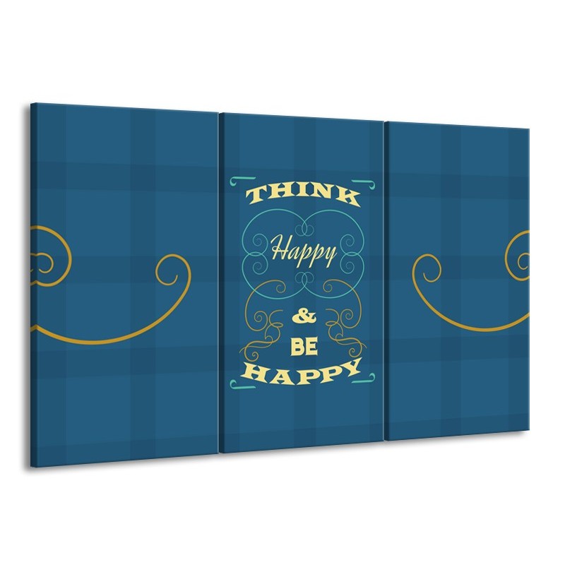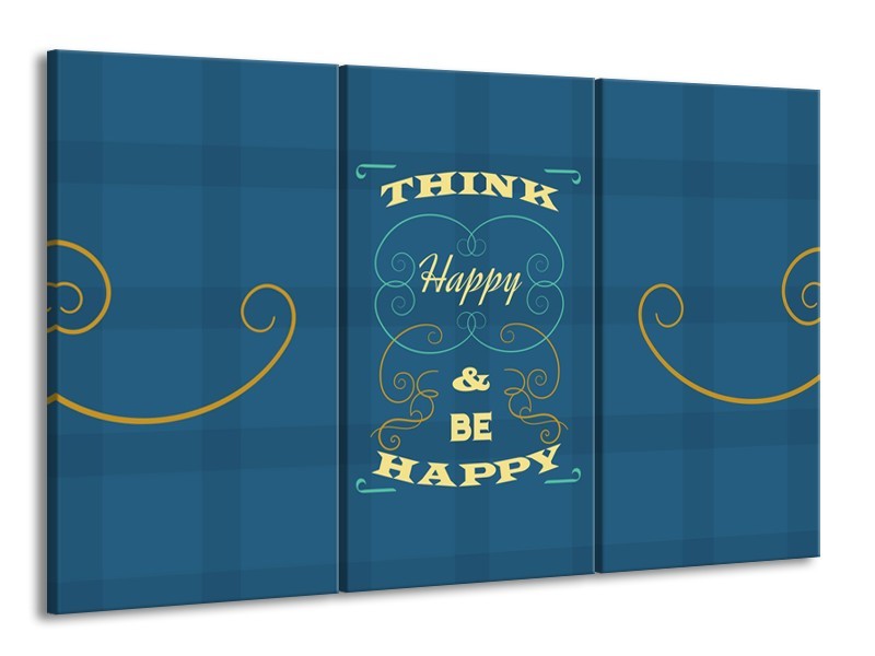 Glasschilderij Tekst, Modern | Blauw, Geel | 165x100cm 3Luik