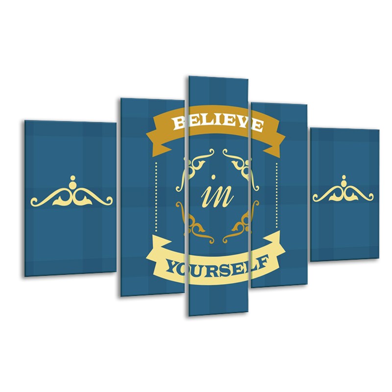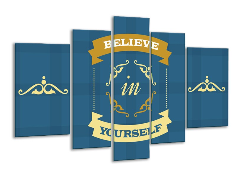 Glasschilderij Tekst, Modern | Blauw, Geel | 170x100cm 5Luik