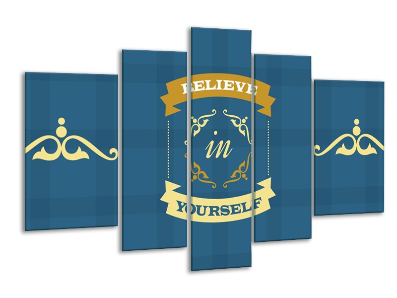 Glasschilderij Tekst, Modern | Blauw, Geel | 170x100cm 5Luik